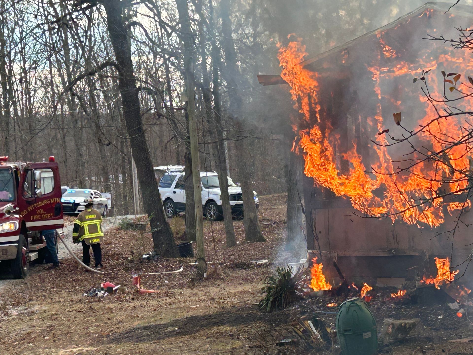 Marion County Constable Stacy Hickman assisting with traffic control at a residential fire with South Pittsburg Mountain Volunteer Fire Department January 2024.
