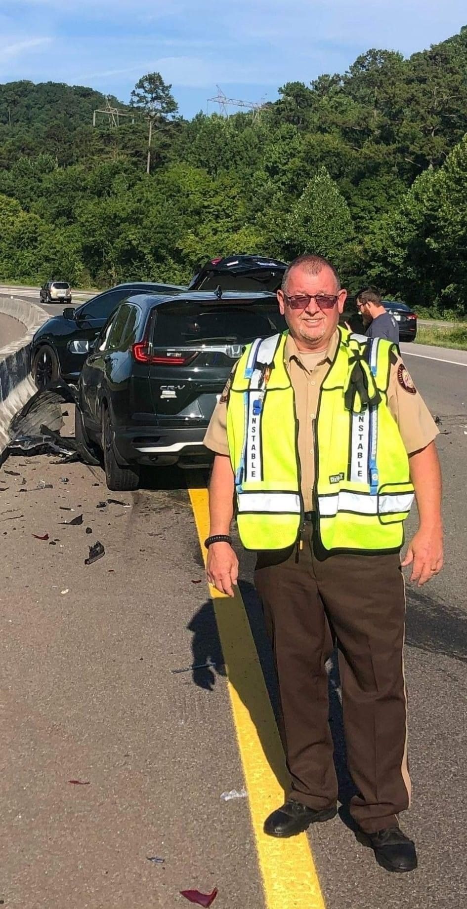 Anderson County Constable Fred Gilliam assisting with a MVA he witnessed in Oak Ridge. July 2022