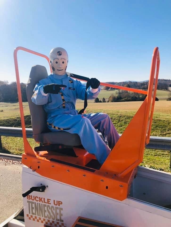 Crash test dummy reminds drivers to wear their seat belt at a safety fair in Jefferson County sponsored by Jefferson County Constables and the TN Highway Safety Office.