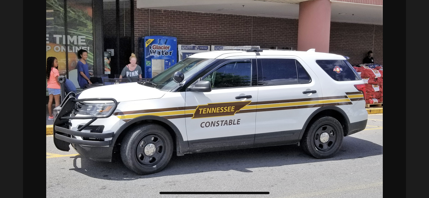 Constable patrol car in Dandridge, TN with a peek of the Smoky Mountains in the background.
